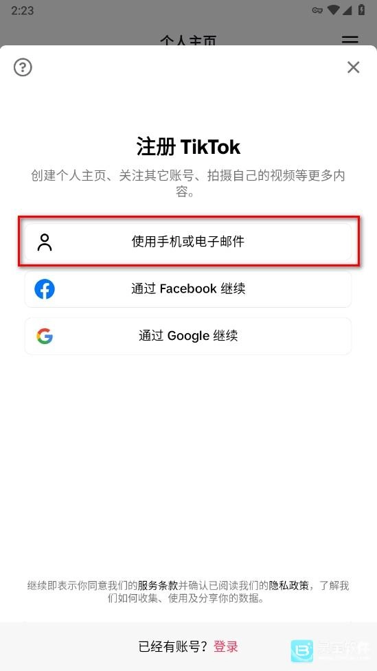 3、若你拥有Google账号等,可直接登录,我在此以手机或电子邮件为例进行注册演示