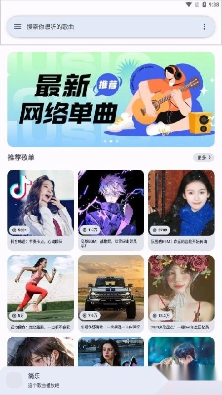 在简乐音乐里,你能直接获取风格各异的歌单,轻松找到心仪的歌曲,随时随地聆听和体验,十分便捷。