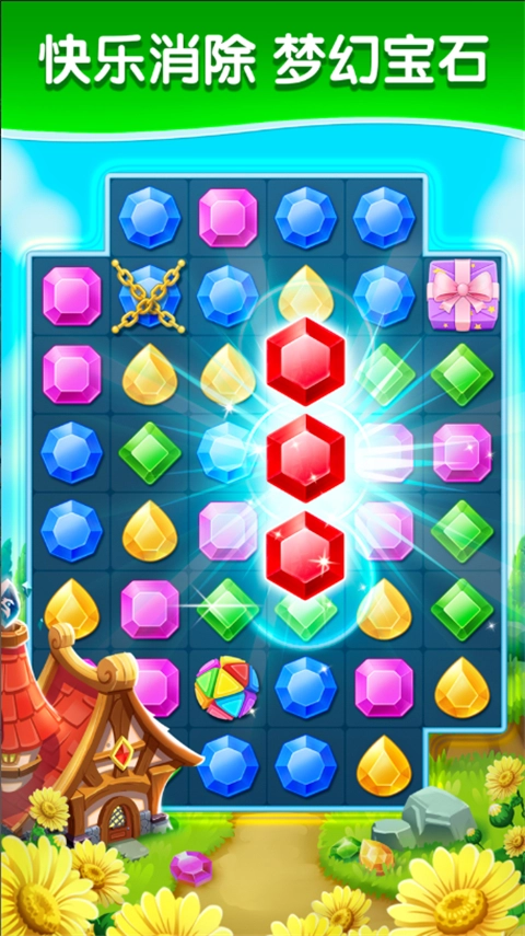 1、交换相邻的钻石位置,只要能形成水平或垂直的三颗或多颗相同颜色的宝石,就会自动触发淘汰效果。