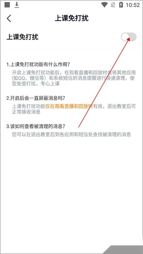 4、进入上课免打扰界面,点击【上课免打扰】右侧按钮开启。