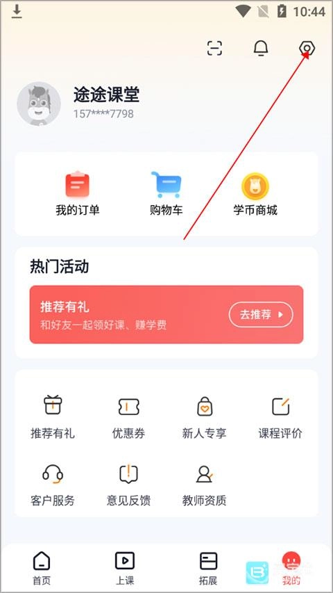2、进入我的界面,点击页面右上角【设置图标】。