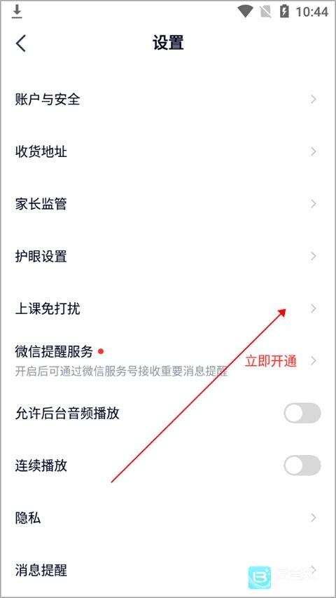 3、进入设置界面,点击【上课免打扰】。