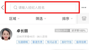 3. 进入经纪人列表页后,在顶部搜索框输入经纪人姓名、门店或联系方式,即可快速定位目标顾问。
