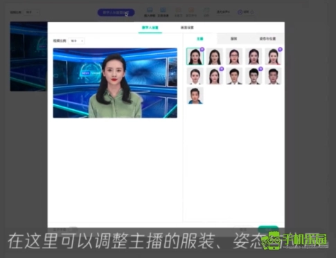 1、点击“数字人与画面设置”,可调整主播服装、姿态与位置。