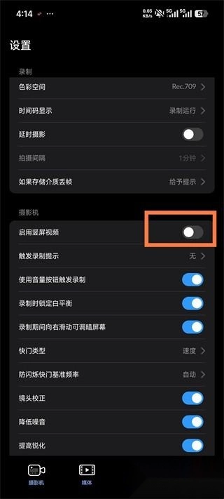 2、进入设置界面后,可依据自身需求调整各项参数。要是你想采用竖屏模式拍摄,就请开启「启用竖屏视频」这个选项。