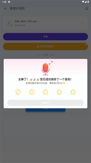 变声器提供多种变声效果,像小女孩、御姐、幽灵、机器人等,只需轻点一下,就能给声音增添趣味效果。它超萌,界面设计简洁又好玩,让声音更具动感。还能轻松保存到本地,快速和朋友分享,一同享受欢乐时光!