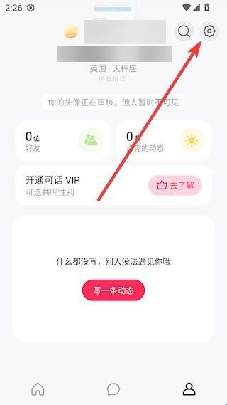 2、进入我的页面之后,点击右上角设置标识,如图