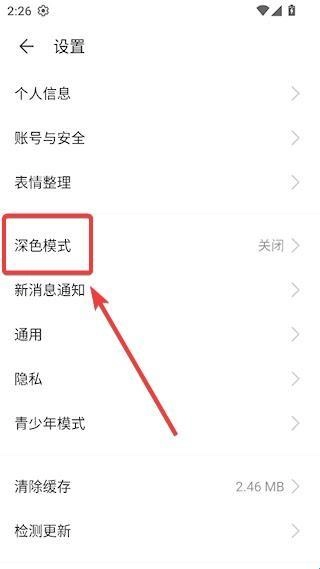3、进入设置页面后,找到并点击深色模式