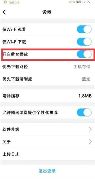 进入设置界面后,点击打开“开启后台播放”功能即可。