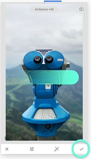 Snapseed 中的大多数调整都是这样工作的:在图像上垂直滚动以选择参数,然后水平滑动以更改参数值。