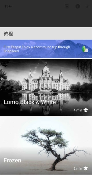 要开始编辑,请点击工具选项卡。这显示了 Snapseed 的所有编辑工具。水平滚动以查看选项,然后点击以进行选择。