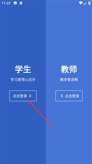 1、选择与【学生】身份对应的【点击登录】按钮,进入登录页面,为账号验证做准备。