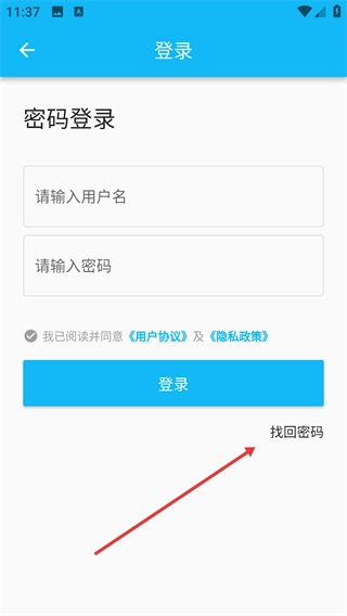 2、在登录页面点击【找回密码】选项,进入密码重置的信息填写界面。