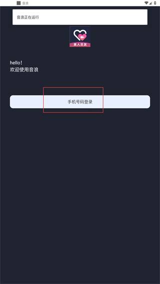 1、在音浪的欢迎界面,点击【手机号码登录】按钮,进入手机号登录的操作页面。