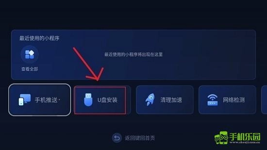 4、进入后,你会在界面中看到插入电视的U盘信息,找到所需的APK即可。(本站仅作演示,未插入U盘,因此显示“未检测到U盘”)