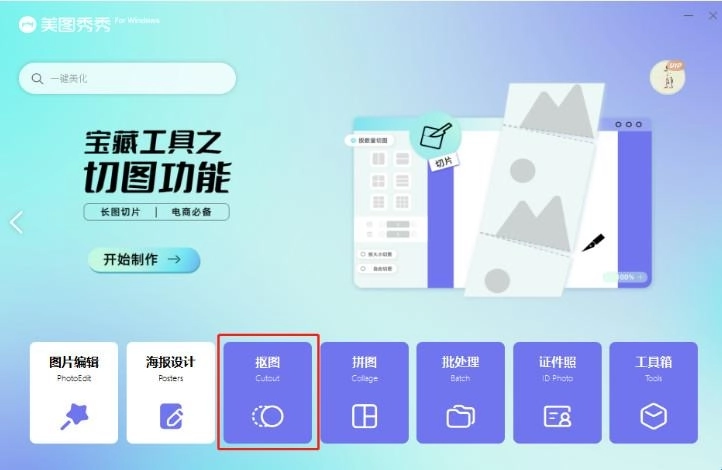 第一步,打开美图秀秀,点击“抠图”