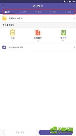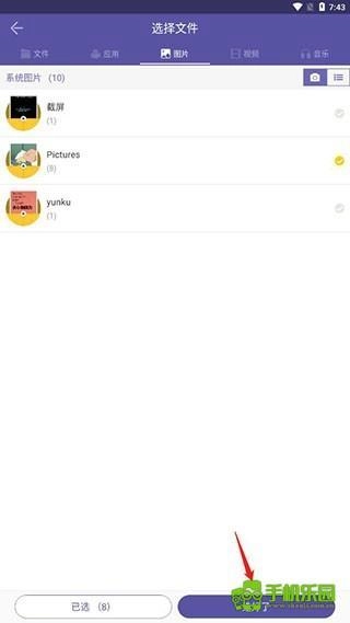 2、若选择“我要发送”,接着在其中挑选需发送的文件、应用、图片、视频、音乐等内容;