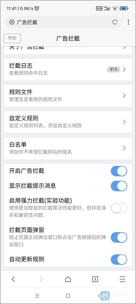 开启拦截页面弹窗可以拦截跳转链接和链接,也能拦截手误点到的广告目标链接
