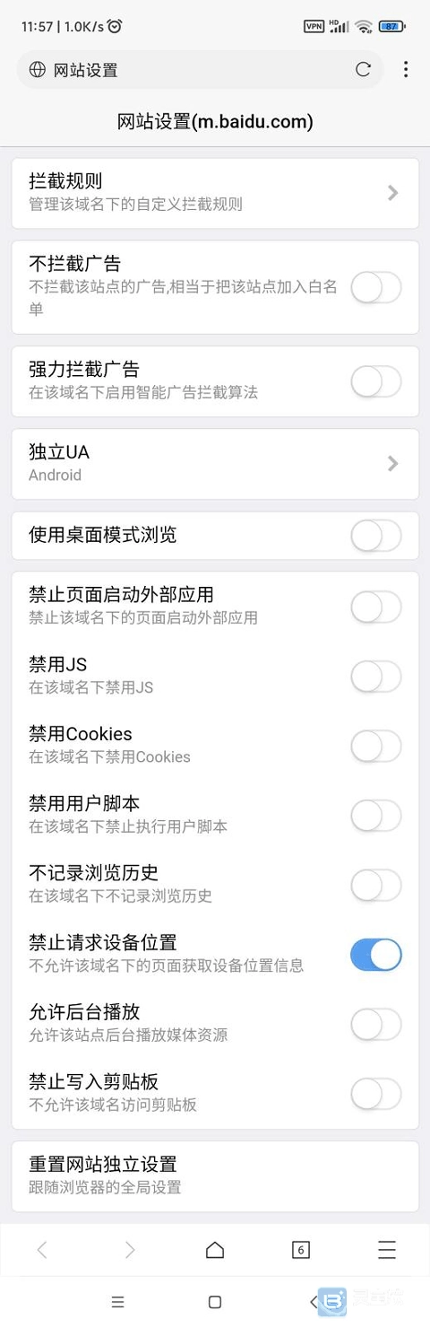 强力拦截功能适合在小说网站使用,可以在网站设置里单独开启