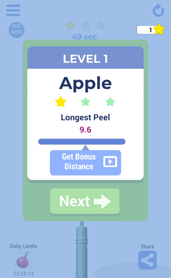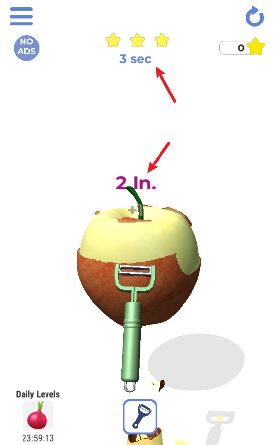 角色/工具成长系统:截图暗示了角色或工具的升级路径(如从“Pedar”进化为“Pedler”)。这意味着通过挑战可以解锁更具效率的削皮刀、特殊技能(如慢镜头)或皮肤,为重复练习提供持续目标。