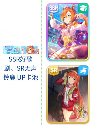 在中的卡池分为两种,分别是P卡(全称preety,即马娘卡)和S卡(全称support卡,即支援卡),关于支援卡,后面还会详细介绍。