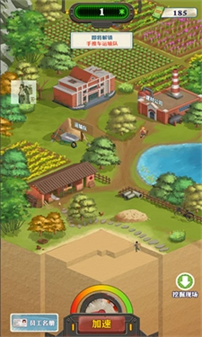 1、在山野间鸟鸣蝉叫的背景音乐里,玩家只需简单操作,就能操控角色挖土掘宝。