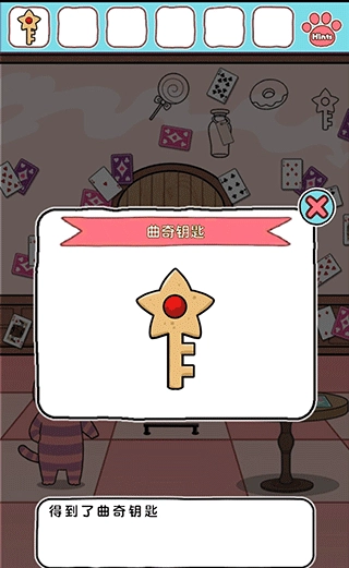 4、出现一只条纹猫,对话后获得钥匙。