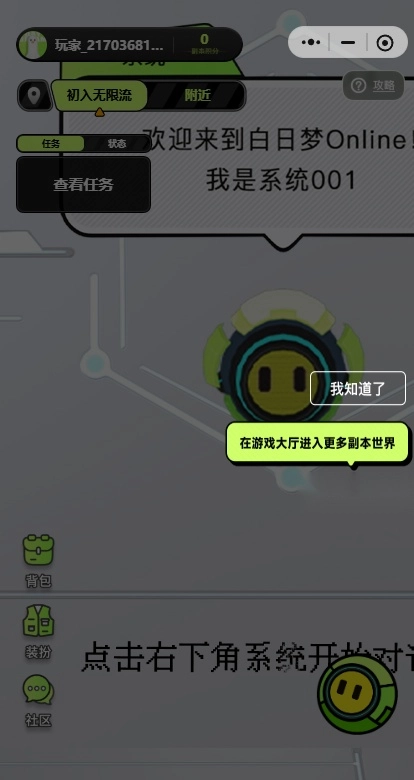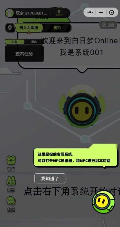 白日梦online入口利用AR技术打造互动玩法,用户借助摄像头扫描周围环境就能激活虚拟副本,比如把公园长椅变成密室入口,这种虚实融合的设计让探索过程满是惊喜;平台提供梦回千禧、校园规则怪谈等多种主题剧本,还配备了简易创作工具,即便没有编程基础也能自动生成剧情,让每个人都能打造专属的冒险体验。