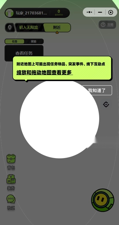 3.在副本中可以切换主地图和附近地图,开启定位功能后能显示周边的隐藏任务点。