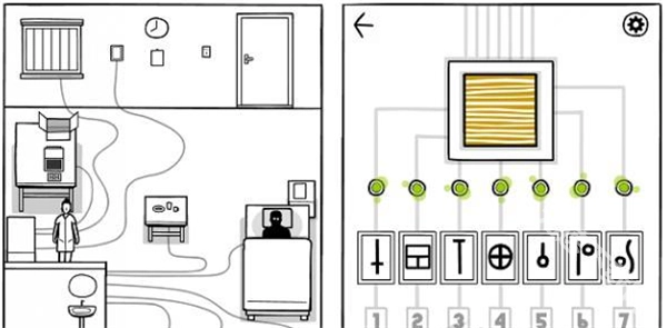3、有八根线分别连接着八个地方,不过我们仅需七个密码。此时若要打开电视,电视上持续浮动的线条会为你呈现每个对应密码的所在位置,最终答案详见下图。