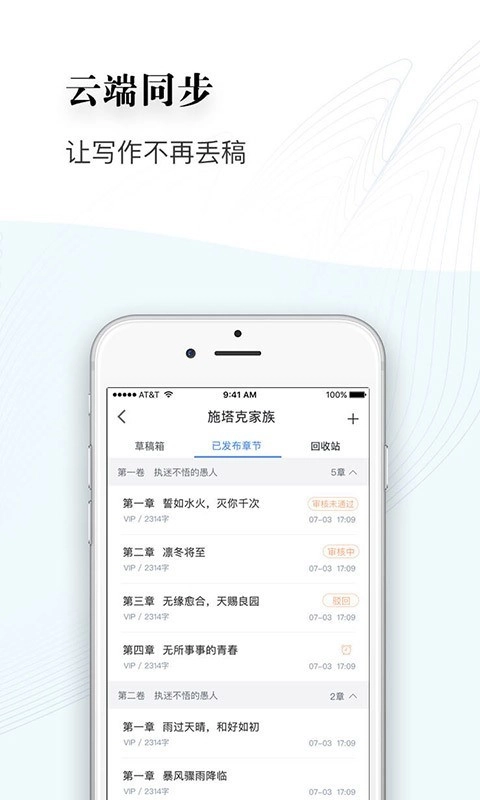 2、《云上写作》作为一款写作工具,能够协助作家在任何时间、任何地点记录突发的创作灵感,便捷地生成作品大纲,并且可以实时同步写作内容,让创作者无需忧虑稿件遗失的问题。