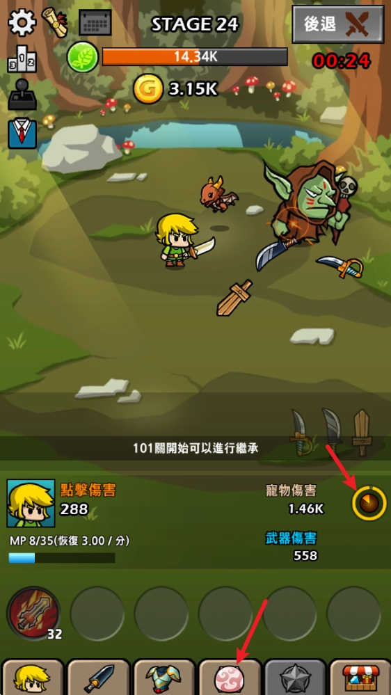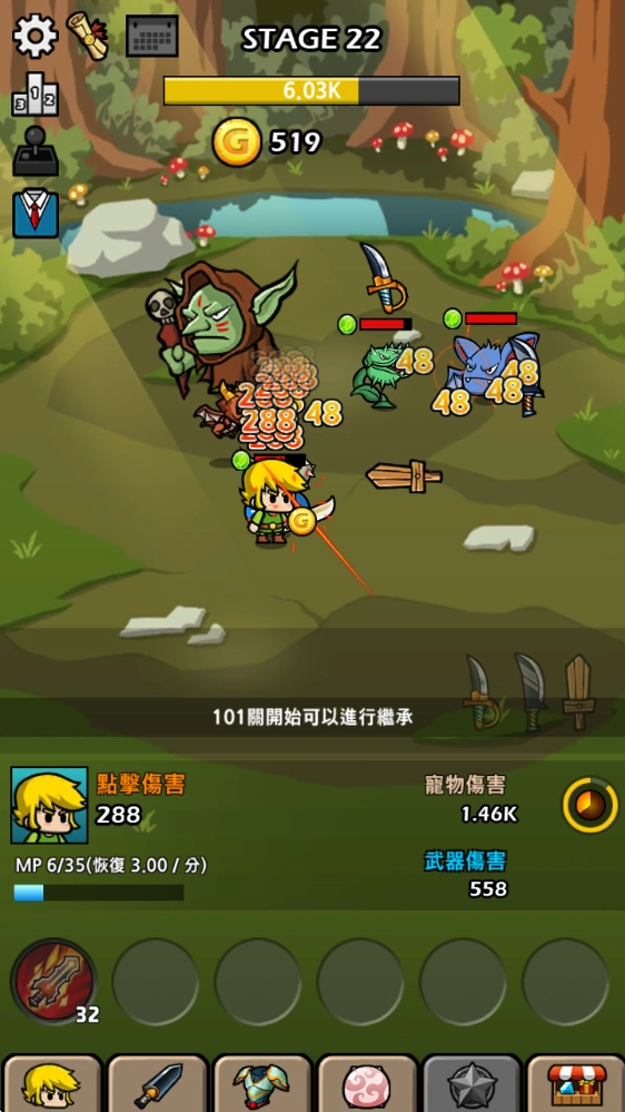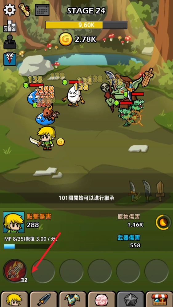1、进入后,点击屏幕即可控制勇者进行战斗。