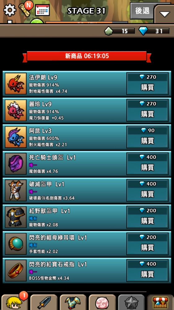 6、在商店中,可以消耗钻石来购买一些更为强力的装备、宠物。