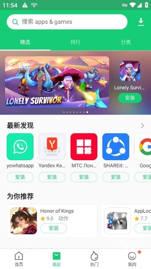 1、节能又省力,专为Android系统量身打造,每日精选推荐应用,为您带来最优的资源体验。
