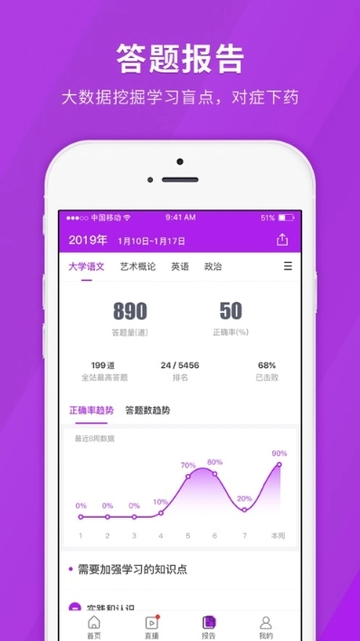 2、助力用户弥补自身短板,依据用户的做题表现与错题记录,提供具有针对性的练习及强化训练。