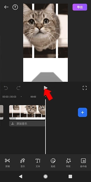 4、在编辑界面的正下方,点击该区域可预览“播放”效果,滑动下方的时间轴则能查看视频帧。