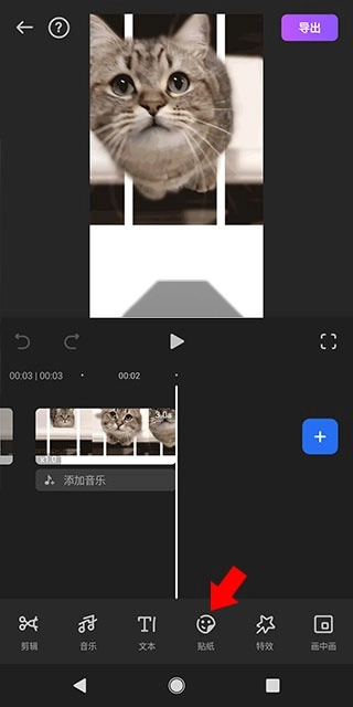 5、界面最下方设有“工具栏”,借助它能够对视频进行剪辑操作,还可以为视频添加文字、贴纸以及特效等元素。