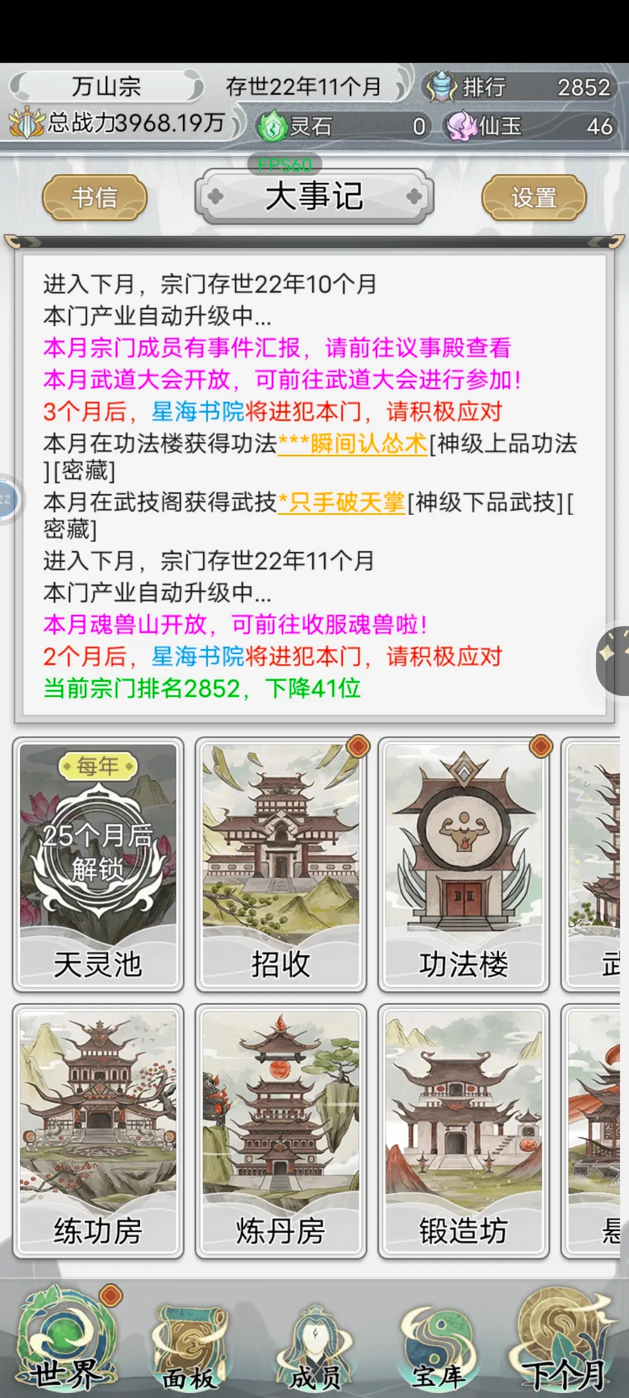 游戏中会有各种突发事件,玩家需要及时处理,确保宗门的稳定发展。这些事件包括弟子叛逃、宗门被攻击、资源争夺等。玩家需要根据实际情况,采取有效的措施,解决问题。