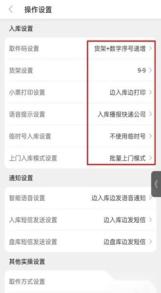3、进入后,找到“入库设置”,把下面的设置都完成下;
