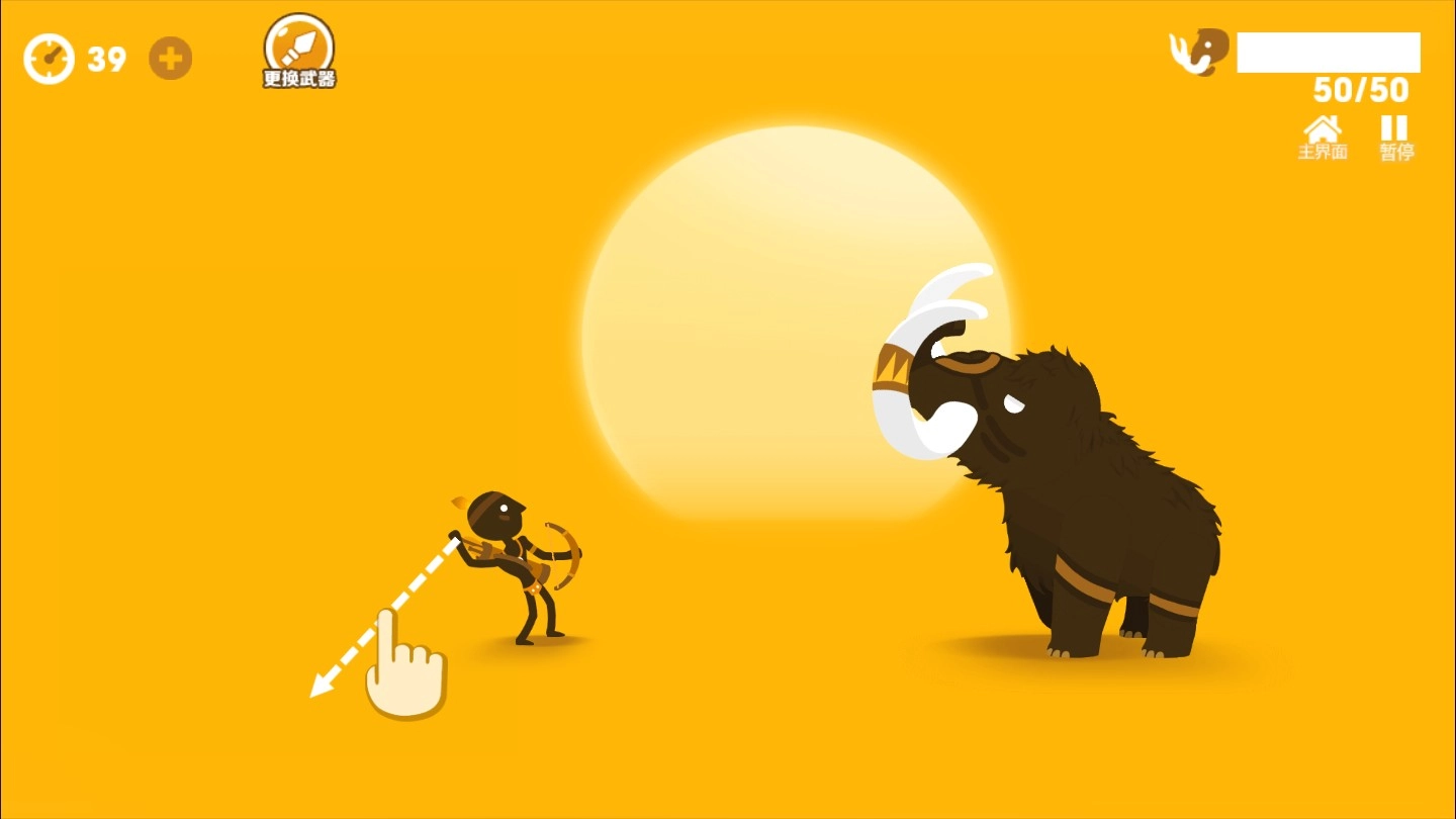玩法非常简单,首先是打猎的攻击部分,按住武器所在的屏幕位置能调整攻击的方向;