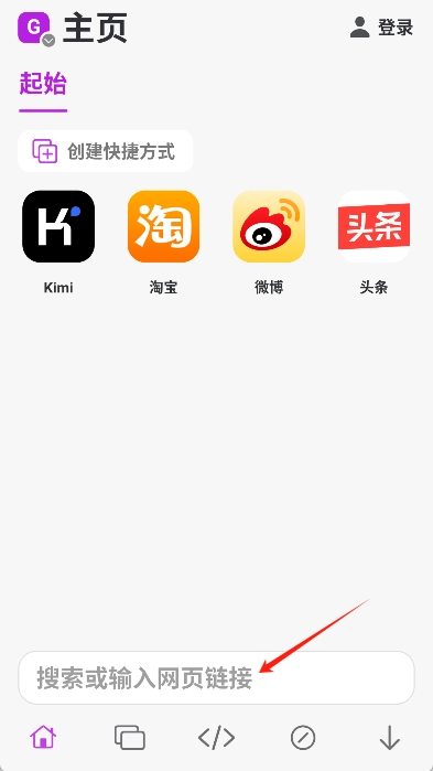 2、随即打开应用,在浏览器底部的地址栏中输入想访问的网站的网址搜索。