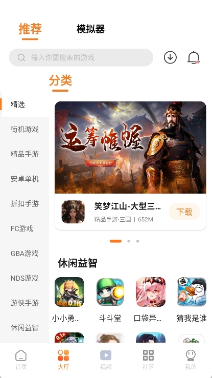 2、进入主界面后用户可以通过搜索框搜索感兴趣的游戏,或者通过分类浏览找到自己喜欢的游戏。