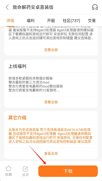 3、找到想要玩的游戏后点击游戏的图标进入游戏详情页面,查看游戏的简介、截图、评分等信息。