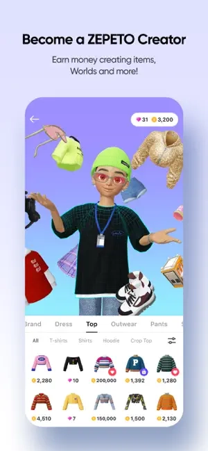 Zepeto国际版的亮点之一是允许玩家创建一个可爱的3D人物。玩家可以通过拍照让Zepeto识别面部特征,然后进行捏脸,即针对面部进行精细打磨,包括眉毛、眼睛、鼻子、嘴巴等细节。此外,玩家还可以为角色选择不同的衣物和房间装饰,进一步个性化他们的虚拟空间。