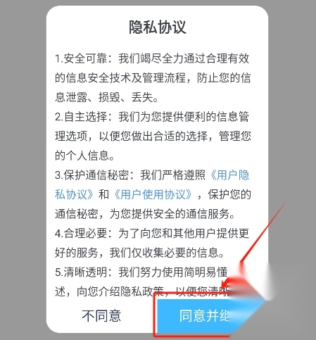 1、首先前往魔趣网下载并安装成分喵应用,随后点击“同意并继续”按钮进入软件。