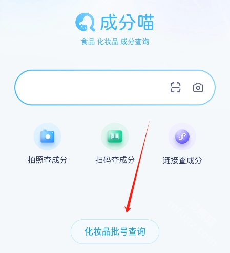4、在首页这里还提供了“化妆品批号查询”,输入化妆品批号即可快速查询真伪