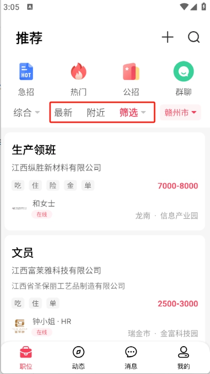 2、筛选职位:在首页中用户可以通过多种筛选条件(如工资、工作地点等)来找到合适的工作。