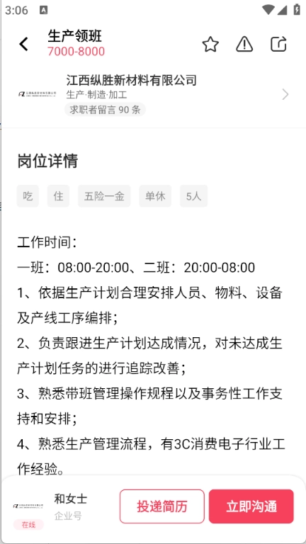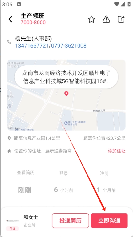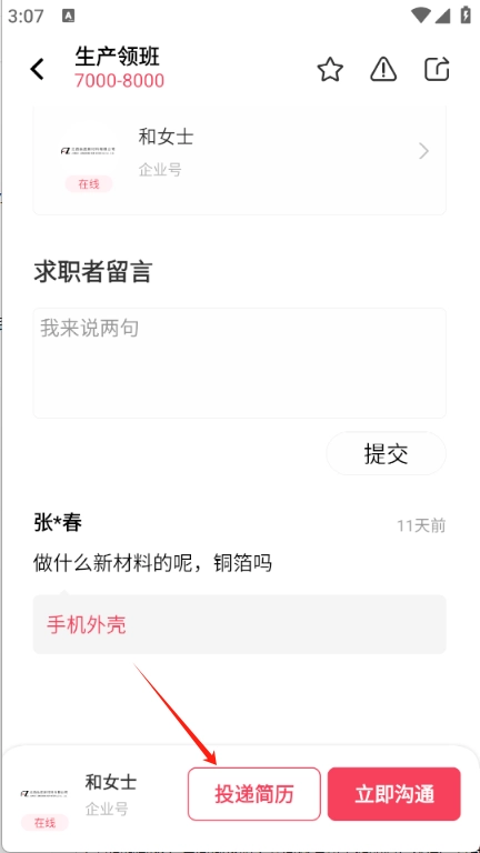 4、私聊沟通:如果对职位有进一步的问题或需要更多了解,可以点击【私聊】与企业直接沟通。