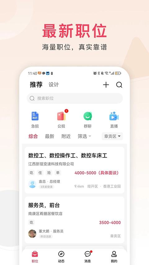 5.找附近工作:智能推荐家门口的高薪职位,涵盖互联网、物流快递、工厂、电商、名企连锁等领域,靠谱工作触手可及。