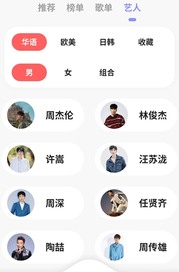 3、用户们可以选择榜单、歌单和艺人等分类来听歌,所有的歌曲都是免费的哟;